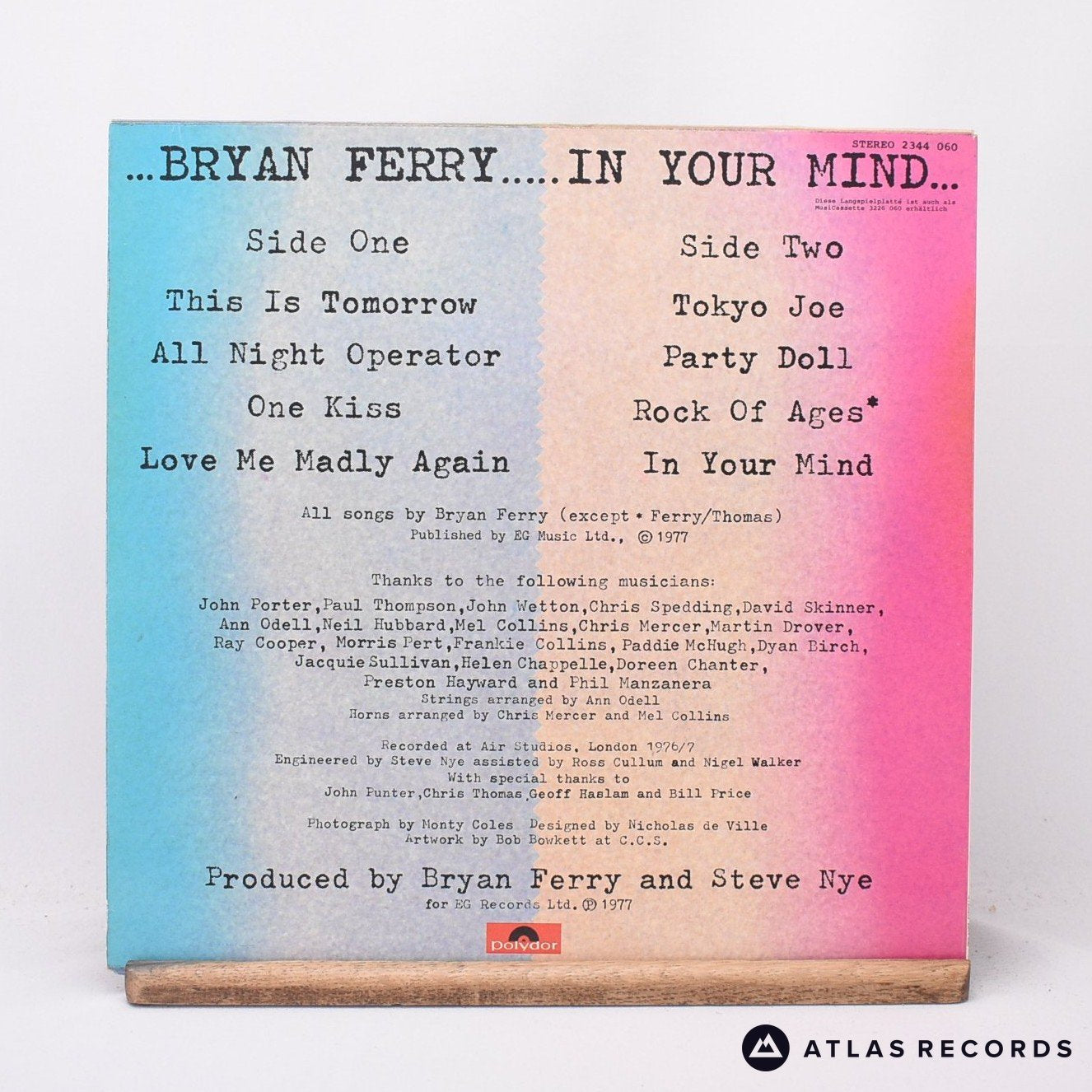 Bryan Ferry - In Your Mind - LP Vinyl Record - EX/EX is backordered and will ship as soon as it is back in stock.