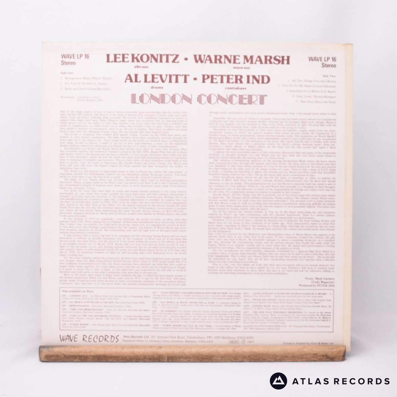 Lee Konitz - London Concert - A1 B1 LP Vinyl Record - EX/EX is backordered and will ship as soon as it is back in stock.