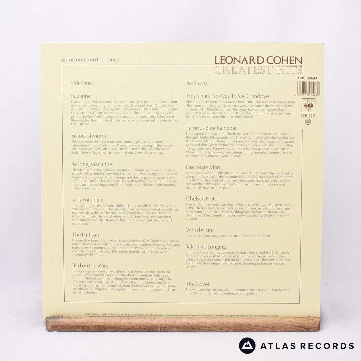 Leonard Cohen - Greatest Hits - Reissue Lyric Sheet LP Vinyl Record - EX/EX is backordered and will ship as soon as it is back in stock.