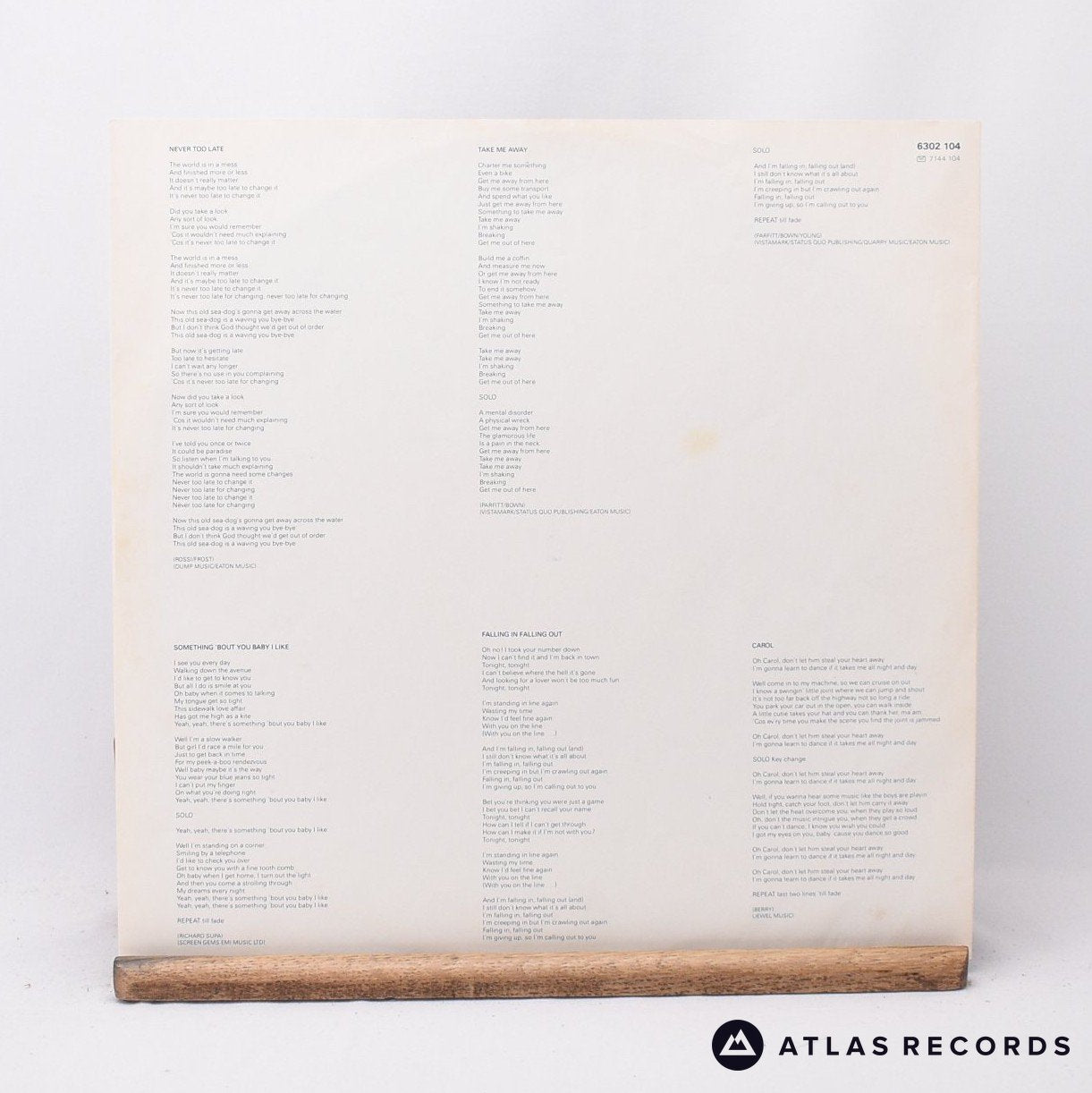 Status Quo - Never Too Late - Townhouse LP Vinyl Record - VG+/EX is backordered and will ship as soon as it is back in stock.