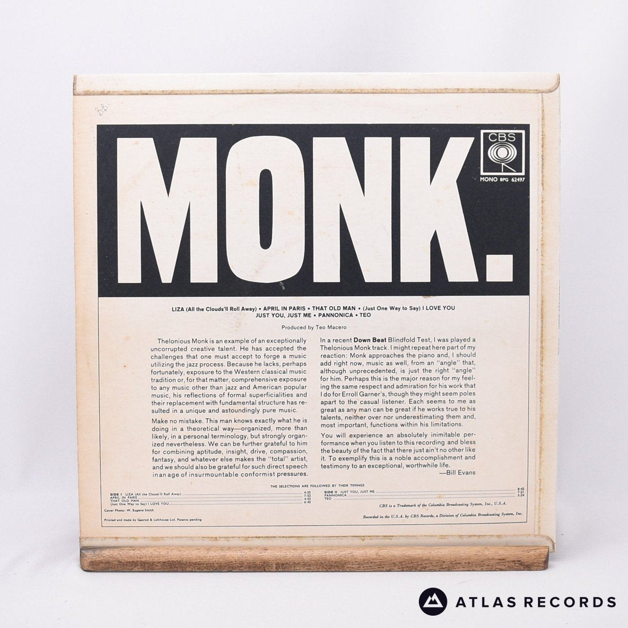 Thelonious Monk - Monk - Mono LP Vinyl Record - EX/VG+ is backordered and will ship as soon as it is back in stock.